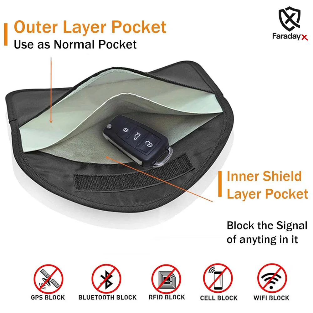 کیف فارادی ایکس که با مواد محافظ چند لایه با کیفیت بالا ساخته شده است، یک قفس فارادی غیرقابل نفوذ ایجاد میکند. این کیف به طور موثر تمام سیگنالهای بیسیم (وایفای، بلوتوث، GPS، RFID، تلفن همراه) را مسدود میکند و به عنوان یک مسدودکننده سیگنال تلفن همراه و مسدودکننده EMF قابل اعتماد برای تلفن همراه عمل میکند و از حریم خصوصی دیجیتال شما در برابر هک، ردیابی و دسترسی غیرمجاز محافظت میکند. بسته شدن کیف بهوسیله چسب ولکرو (Velcro) محکم انجام میشه که باعث میشه انسداد سیگنال بهصورت کامل و بدون نشتی حفظ شود.